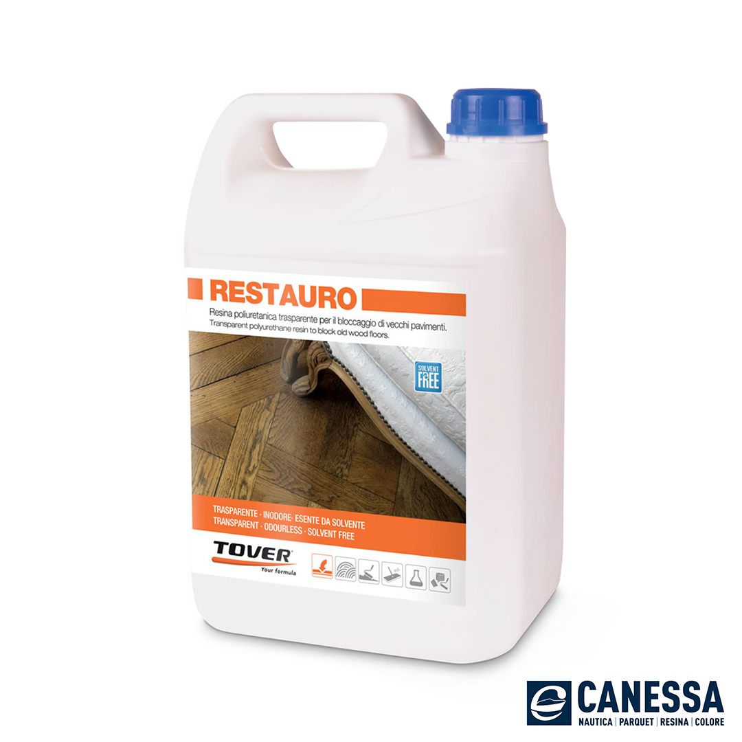 Restauro è la resina igroindurente monocomponente all’acqua, esente da solventi. Blocca in maniera efficace i listoncini dei vecchi pavimenti in legno non perfettamente fissati al sottofondo. Inodore, può essere utilizzato negli ambienti abitati.